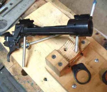 Here the action is held in place ready for a SSS or Wheeler barrel nut wrench